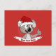 Vykort med illustration av söt liten koala bär med jultomtens hatt i röd cirkel, juldesign för barn, redigerbar helgdagar med anpassningsbar fält för egen text, illustrerad av Radka Kavalcova
