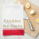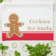 Den här julhelgen, häng den vackra julhandduken med en smakfull tittar pepparkaksgubbe över en vit bakgrund med rött och vitt accent rand och text som lyder "Cookies for Santa". Anpassa handduken eller köp den som visas.