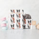 Vattenfärgen Gräns Collie i en röd och grönt vinterscarf på vit bakgrund.