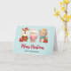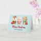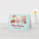 Julkort med en söt illustration som visar en kanin, en björn och en hjort som alla är klädda i festlig utstyrsel. Bedårande och fantasifullt.