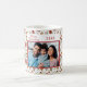 Anpassa och lägg till ett eget familjefoto och ett eget år. En vit bakgrund som dekorerats med röd dekoration, som röda kardinaler, mullad vin, poinsettiska blommigtar.