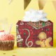 En färgstark Papper julklapp i Pepparkaksgubbar och husskorpor på rödhårig bakgrund