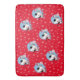Julkor som bär julhattar på ett rött badmat med vit snöflingor