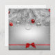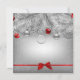 Vitt grenar täckt med snö och dekorerat med bubblor på gråttets bakgrund bundet med rött båge, julillustration