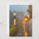 En charmerande gata med lysande lampor och dekorerade butiker, mjukt upplysta genom kvällsporten, skapande en varm och inbjudande atmosfär.
