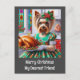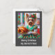 God Jul Min Kära Vän. Australisk Silky Terrier Hund med en ugnsbakad kalkon.