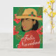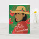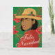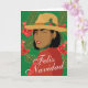 Sprid julglädje med vårt vackert designade ”Feliz Navidad”-grattiskort! Detta festliga kort visar en vacker latinsk kvinna iförd en beige fedorahatt med julgransekvens som accent. Texten på framsidan, ”Feliz Navidad”, visas i ett stilrent kalligrafiskt teckensnitt, medan insidan ger gott om utrymme för ett personligt meddelande till dina nära och kära.