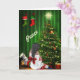 Afroamerikanskt julkort med flicka sittande framför julgranen