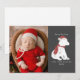 Illustration av en pingvinbaby som bär tomtehatt och matchande halsduk. Anpassa namn, år och foto.