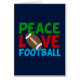 Peace Kärlek Football. Ett sött julkort för en spelare eller fläkt. En buss kan skicka ut korten till sitt team. Den här coolans sportdesign är grönt, röd och blå med boll i centrum.