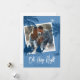 Modernt religiöst julkort med en blå bakgrund, ett foto som du kan ersätta med ditt eget, de tre vise männen, ökenpalmer, den vinterskära hälsningen 'O helga natt' och ditt efternamn.