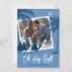 Modernt religiöst julkort med en blå bakgrund, ett foto som du kan ersätta med ditt eget, de tre vise männen, ökenpalmträd, den vinterskära frasen 'oh heliga natt' och ditt efternamn.