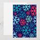 Skicka varma önskningar med cool stil med **Midnight Snowfall Holiday Card**. Kraftiga överdimensionerade snöflingor i festlig röd, isblå och turkos dansar över en djupblå bakgrund och ger detta kort en modern twist på klassisk julstämning. Oavsett om du sprider glädje till vänner, familj eller kunder är denna iögonfallande design perfekt för alla som älskar en stilren, icke-traditionell julvib. Para det med ditt hjärtliga meddelande och gör stämningen ljus - en snöflinga i taget.