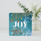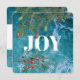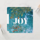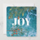 Att kasta djupblått hav vågar i bakgrunden med barrträd och julbär som ramar ord "JOY". Ett vackert Julafton-temat kustdesign som är perfekt för jul i sommar- eller kustjul-firande.