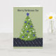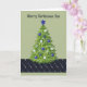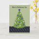 Julkort till din vuxen Son. Utformningen är ett illustrerat Julgran med blå prydnadsföremål och stjärna, och ett blått strippat område där träd kan stå på. Tack vare Hungryjpeg för en del av inslag i designen.
