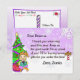 Söta snöflingor med lila bakgrund, med ett älskligt festligt kvinnligt jultomtebrev från jultomten på framsidan. Baksidan har en plats för ditt barn att skriva ner sin jul önskelista.