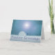 En stjärna hänger i en isig blå himmel, ovanför en igloo, utanför vilken en julklapp hänger optimistiskt. Ord "Festive Hälsning ligger under.