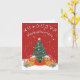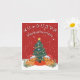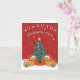 Japanskt julkort som visar de traditionella shisa-hundarna i en julmiljö. God Jul skriven på japanska och sedan som det uttalas i Romaji (engelska bokstäver).