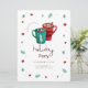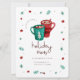 Ett julkort har vanligtvis en festlig och glatt Julfest som påminner om årstidens anda. Här följer en detaljerad beskrivning av hur det kan se ut: Kortets framsida kan visa upp en snövinter-scen, med ett känsligt snöflingor som försiktigt faller över en mysigt by eller ett dekorerat Julgran med tvillingande ljus, skakande ornament och en glödande stjärna överst. I bakgrunden kan det finnas en varm, glödande kamera eller ett pikturesskt snöslandskap med frostiskt träd, som lägger till en fredlig vintercharm. I paletten färg ingår ofta traditionell jul-färger - rött, grönt, guld, silver och vitt - ge är det ett vackert utseende med elegant. Rosett band, holly löv och små gåvor kan också dekorera utformningen av gräns eller ram och förbättra den festliga stämningen. En varm och hjärtfull hälsning som "God jul och Gott nytt år!" eller "Fira Joy!" kan placeras elegant i mitten eller överdelen av kortet i ett vackert, kursivt teckensnitt. Inuti kortet kan det finnas extra utrymme för ett personlig-meddelande, där vänner, familj eller kolleger bjuds in till helgdag med fraser som: "Gå med oss för festlig cheer, skratt och bra sällskap!" Insidan kan också innehålla några små dekorativa beröringspunkter, t.ex. holly, stjärnor eller snöflingor för att behålla den festliga stämningen. På det hela taget förmedlar kortet värme, firande och tillsammans, skapar det perfekt för att bjuda in nära och kära till en julfest vid jul.