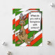 Helgkort med rött vitt och grönt med rass bakgrund. Tecknad med antlar och rött näsa och barns julgåva eller skämt på framsidan