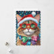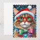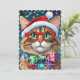 Enkla moderna julkort, fluffiga och ljusa färgglada katt julkort. Rolig och vacker färg lekfull digital julkattsdesign. Det presenterade julkortet visar en rolig julkatt i tomtehatt och juldekorationer, flerfärgad flugband med anpassningsbara högtids- och/eller julhälsningar och anpassat kattenamn. Det visade julkortet har skurna kanter men alla andra former och storlekar på kort finns tillgängliga. Kortet är utskrivbart och tillgängligt för direkt nedladdning. Du kan anpassa och personifiera båda sidor av kortet (för närvarande baksidan förblir tom)