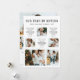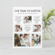 Välkommen in det nya året med detta unika julkort med Årets Bilder i Efterhand. Detta trendiga kort innehåller 'Vårt år i backspegeln' i en stilren vintage-skrivmaskinsfont, 9 familjebilder och text på baksidan för personlig anpassning. Vit text på svart bakgrund.