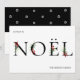 Vinterbotaniska grenar och bär, prydda med "NOEL" i festlig svart och vit.