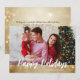 Elegant modern julkort med familjefoto på en gyllene glitterbakgrund. Använd designverktygen för att ändra text, teckensnitt, färger och lägg till ditt eget foto. Finns även som digital nedladdning.
