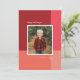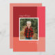 En ren och modern design med en färgblock bakgrund i rött, rosa och korall med ett enda foto. Ett handskrivet typsnitt kompletterar ett enkelt typsnitt för familjenamnet. Byt ut meddelandet och färgen på baksidan för dina egna!