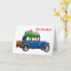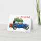 Julkort med gammaldags bil och tomte kort