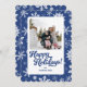 Det här julkortet har en mörkblå bakgrund och ett unikt snöflingmönster. En djärv skrift knyter samman designen. Lägg till dina egna bilder och hälsning för att göra det unikt!