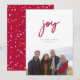 Denna design har ordet "glädje" i modern röd gemen stil med ett rött och vitt snöfallmönster på baksidan.