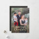 Modern fotokortsdesign med hand plockade-skript i faux guld och guld.