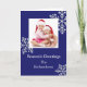 Ett foto med illustrerade kristall snöflingor pryder ditt familjefoto på detta personliga julkort.