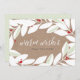 Denna vackra julkortdesign har en botanisk lagerbladsillustration med meddelandet 'varma önskningar' skrivet i ett handskrivet typsnitt. Om du söker det perfekta icke-fotografiska julkortet, är detta det!