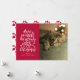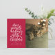 Denna kattälskares högtidsdesign har frasen "Have yourself a meowy little Christmas" i ett modernt vitt skrivstil med små vita tassavtryck runt omkring och ett rött och vitt tassavtrycksmönster på baksidan.