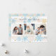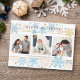 Detta moderna och känsliga kort är perfekt för att skicka jul- och högtidshälsningar till familj och vänner. Designen har en dekoration längs de övre och nedre kanterna, med snöflingor i olika storlekar och mjuka färger. Tre familjefoton visas i mitten. Detta eleganta kort är idealiskt för att fira jul och alla andra högtider under vintersäsongen.