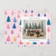 Julkort med söta julgran illustrationer i en pastell färgskala med ett familjefoto i kombination med en högtidlig hälsning och ditt namn och år i ett sans-serif teckensnitt.