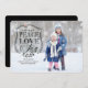 Skicka ett modernt och unikt julkort i år som din familj och vänner kommer att älska. Vårt samtida fotohögtidskort har en fullstorleksbild med texten "öskar er fred, kärlek och glädje" med stilfull typografi, infoldad med lagerblad och prydd med ett rött hjärta. Baksidan ger dig extra utrymme för fler foton och meddelande.
