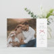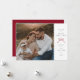 Den här sofistikerade julkortet har en tidlös design med ett stort familjefoto till vänster, inramat av en delikat kragad kant. Höger sida av kortet har en ljus vit bakgrund med ett varmt och festligt "God Jul" -meddelande i elegant serif-teckensnitt. En charmig röd rosettaccent lägger till en touch av julstämning. Under hälsningen finns ett personligt meddelande, inklusive familjens namn och året "2024". Det här kortet balanserar modern enkelhet med en klassisk julestetik, vilket gör det till det perfekta valet för att sprida kärlek och glädje denna jul.
