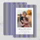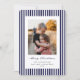 Ett klassiskt platt julkort med tunna marinblå och vita ränder, ett 'God Jul' meddelande i en traditionell bläckpenna-stil med fullt anpassningsbar text undertill och ett foto. Baksidan har samma randiga mönster, men det kan enkelt bytas ut mot ett foto om du föredrar det. Finns i olika färger och med olika julmeddelanden i min butik.