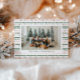 Julkort med en söt pastell rosa och grön tapetbakgrund med ett familjefoto i kombination med en jullig hälsning och ditt namn och år i en sans serif-teckensnitt.
