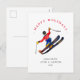 Roligt vattenfärgsskidåkning vinter sport Personligt julkort.
