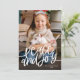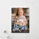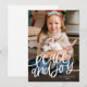 Ett enkelt julkort med orden ”fred och glädje” i handskriven stil och ditt favoritfoto.