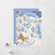 Fira vinterskaönheten med detta underbara julkort, som visar en snötäckt byväg som slingrar sig genom mysiga hem och frostiga träd. Det lugna landskapet inger en känsla av ro och glädje, perfekt för att dela med sig av dina varmaste julhälsningar. Detta kort är ett idealiskt val för att sprida säsongens glädje, och all text är helt anpassningsbar för att passa ditt personliga meddelande.
