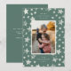 Ett fantasifullt julkort med ett handgjort slumpmässigt stjärnmönster runt ett foto. Byt ut julmeddelandet på framsidan och baksidan mot ditt eget!
