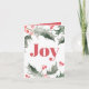 De här julkorten har vattenfärg i röda nyanser och grönt. "Joy" i ord står i fet röd brev. Använda mallen fält för att lägga till personligen hälsning. Ett botaniskt men ändå elegant val för familj och vänner eller för att beställa stora helgdagskort för företag. Den finns också i en hämtningsbar utskrivbar fil.