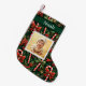 Anpassa Porträtt i ett leende baby i en stickad hatt, inramad av ett jultemat gräns med polkagrisar, holly och festande bögar. Baby har en neutralt som passar och lägger till värme och charm till helgdag