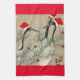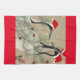 Kraner som njuter av jul med vänner med julhattar och dekorationer. En vacker beige bakgrund med röda accenter.