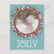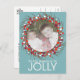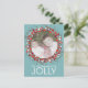 En blått gård med berrysk andedräkt som foto ram. Ett modernt skript används för Glad helg. En jul hälsning - må era dagar vara trevliga och ljusa - finns med på vykortssidan med ett område för namnteckning av familj och hälsning.